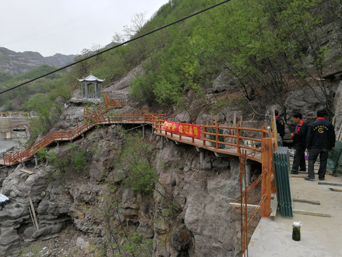 棧道施工單位將最終方案確定后,進(jìn)行使用材料的購買,逐步安排施工人員進(jìn)場。針對工程成立施工部、原材料采購部、施工安全管理部、生活后勤部、財務(wù)部來確保棧道工程的順利進(jìn)行。