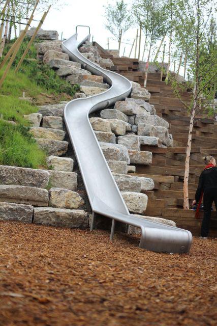 Outlook Hill是4座山中最高的,接著就是Grassy Hill、Discovery Hill 和Slide Hill,從7.9米到11.8米(26英尺到39英尺)不等。每座山部分建在被拆毀建筑和停車(chē)場(chǎng)的殘片上。除涂上一層表土,Mathews Nielsen Landscape Architects事務(wù)所還種植了本土或適應(yīng)當(dāng)?shù)厣a(chǎn)的植物種類——54種,包括4.3萬(wàn)灌木和3000棵樹(shù)木,解決該海港的鹽水問(wèn)題。