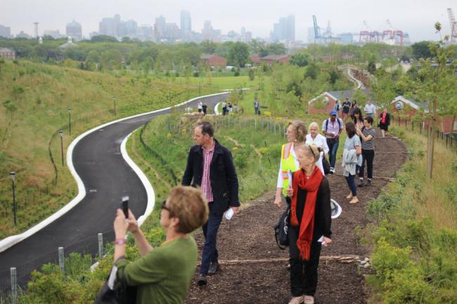 在6月28日的媒體巡回演出期間,該信托的負(fù)責(zé)人萊斯利?科赫表示“我們有個(gè)想法,將該島設(shè)計(jì)成一個(gè)神奇的地方,你無(wú)論在公園中做什么都能看到自由女神像,人們認(rèn)為這個(gè)想法很愚蠢。但我們的設(shè)計(jì)大綱就是讓自由女神像回歸到紐約人的視線中?!?br /> 在Outlook Hill的頂端更能清楚地了解到該項(xiàng)目的目標(biāo),它比該島高出21米(70英尺),更能全面地觀賞到自由女神像以及曼哈頓天際線、澤西城和布魯克林。